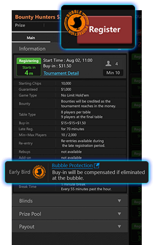 如果你成为泡沫(离奖金圈最近的玩家),将获得Buy-in退还。