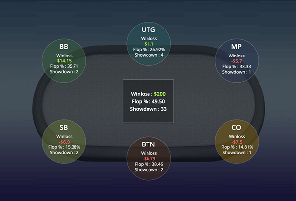 底牌分页显示所有组合的矩阵,提供给您玩过的每底牌的总净收入。